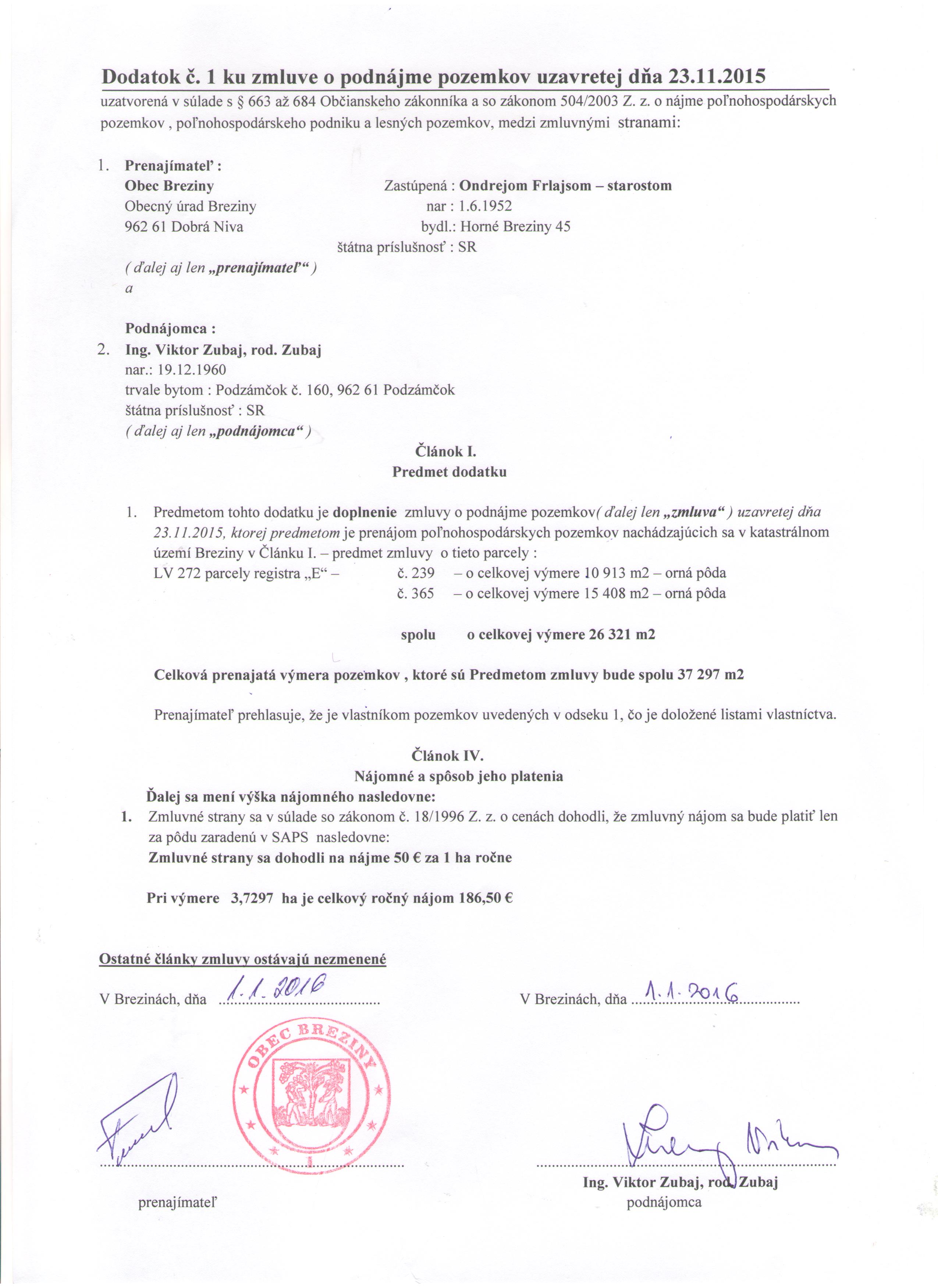 Dodatok č. 1 k zmluveo podnájme pozemkov Ing. Zubaj.jpg
